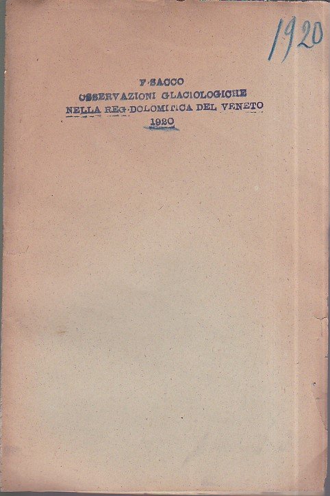 Osservazioni glaciologiche nella regione dolomitica del Veneto. Nota | Libri antichi e moderni | Sacco Federico