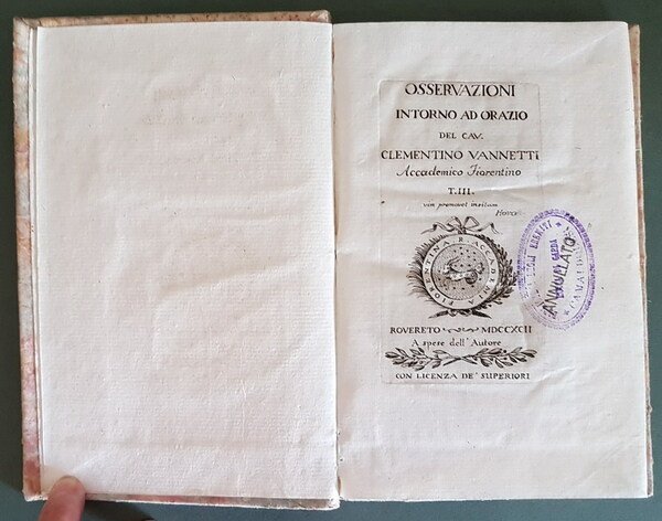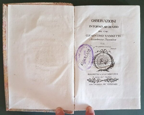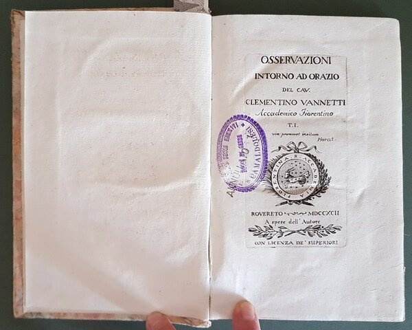 OSSERVAZIONI INTORNO AD ORAZIO (tomi I, II e III) | Libri antichi e moderni | Del Cav. Clementino Vannetti Accademico Fiorentino