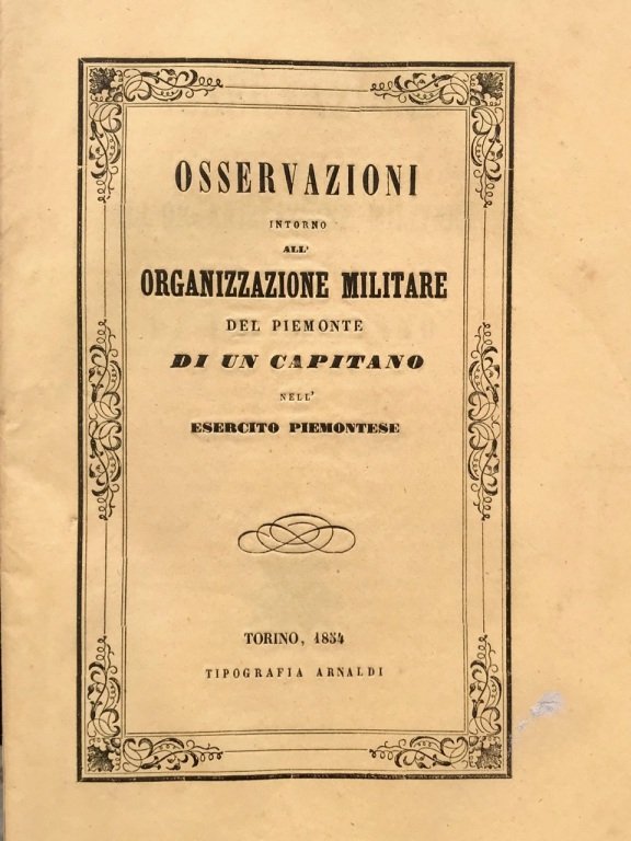 Osservazioni intorno all'organizzazione militare del Piemonte di un capitano nell'Esercito Piemontese. | Libri antichi e moderni | [Guicciardi Enrico].