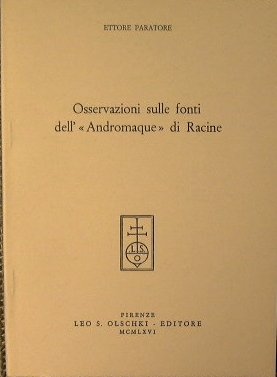 Osservazioni sulle fonti dell'Andromaque di Racine | Libri antichi e moderni | Paratore Ettore