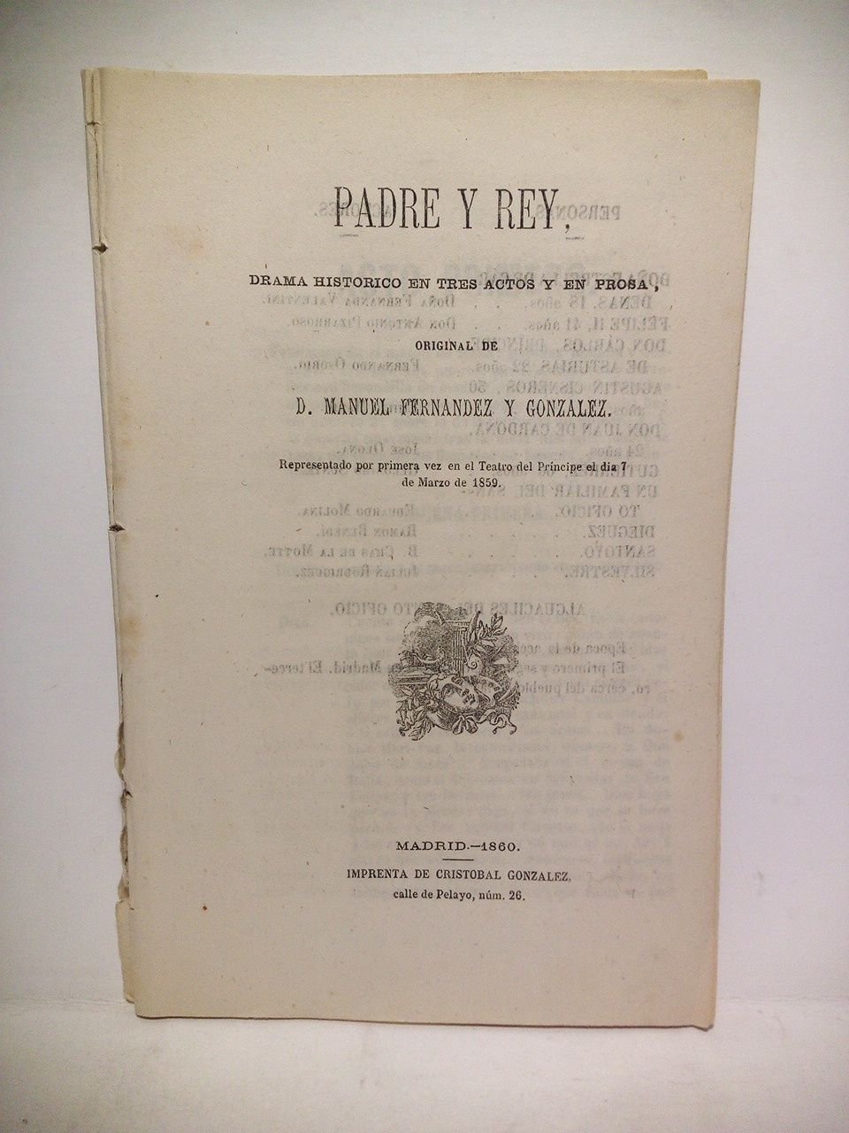 Padre y Rey. (Drama histórico en tres actos y en prosa. Representado por primera vez en el Teatro del Príncipe el día 7 de Marzo de 1859) | Libri antichi e moderni | Fernandez Y Gonzalez, Manuel