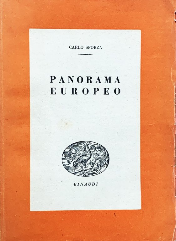 I ed. italiana: aprile 1945 (ed. originale: Synthèse de l'Europe, 1937. "Tradotto dall'originale francese, il libro fu poi edito a New York ed a Londra, in piena guerra. Le pagine della Russia vi furono aggiunte allora; l'appendice al cap. XXIII è del 1944; tutto il resto è dato secondo l'edizione francese del 1937", dalla Prefazione dell'Autore alla prima traduione italiana, p. IX). Traduzione di Maria Venturini. VIII/ XII+196/ brossura con grafica in b/arancione/n. Collana Saggi, L. Stato discreto (manca la sovraccoperta - usura della copertina, in particolare ai margini - copertina e pagine brunite - rottura con lacuna al margine inferiore delle pp. 3-4 che non compromette il testo). Indice: Prefazione dell'autore alla prima traduzione italiana; Carlo Sforza (Roma, aprile 1945) - L'abbassamento intellettuale dell'Europa - Il significato della guerra del 1914-18 - Le guerre di prestigio - I francesi dopo la prima guerra mondiale - I britannici e il continente europeo - Britannici e americani - La Gran Bretagna e i Dominii - Belgi e neerlandesi - La politica estera del Belgio - Scandinavi - Italiani - L'universalismo del popolo italiano - Europa centrale - Atmosfera e capi nei Balcani - Atmosfera e capi d'occidente - Austria e austriaci - Spagnuoli - Polacchi - La nuova Russia - Gli europei e le colonie - L'Italia e i Mandati-appendice al cap. XXIII - Le delusioni dei Mandati - Problemi israelitici - Conclusione: L'avvenire dell'Europa - Commiato - Indice dei nomi.