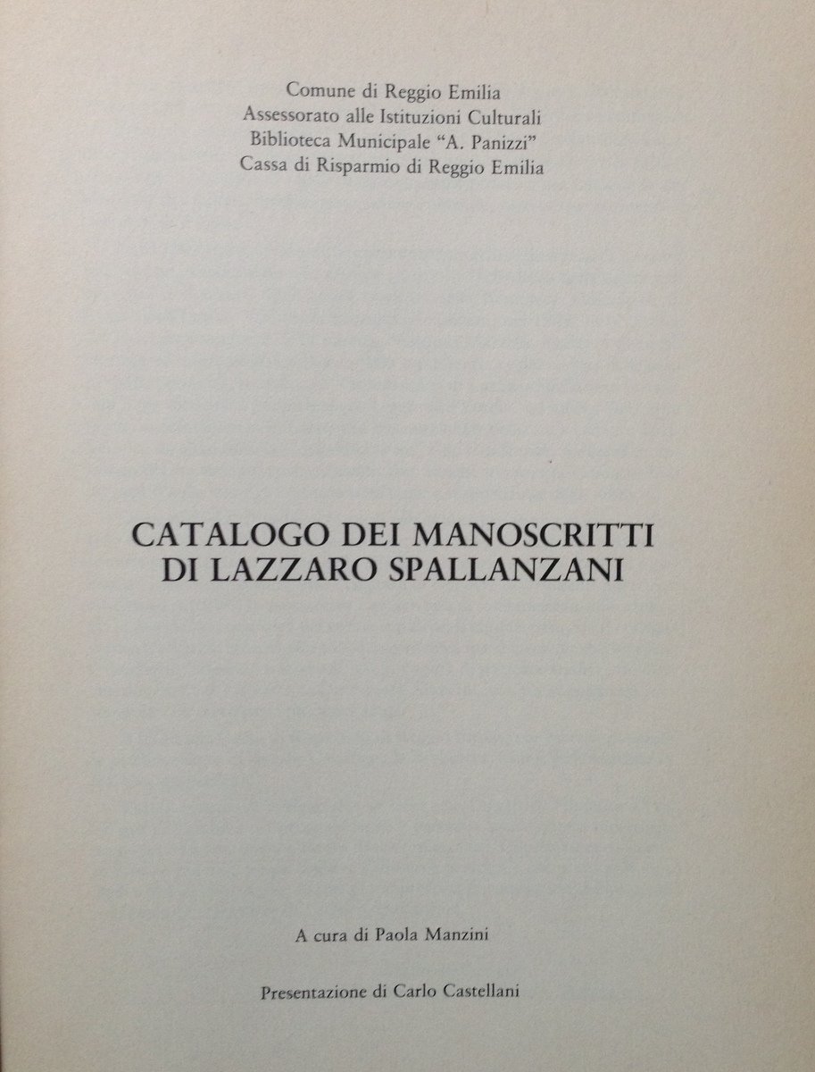 Paola Manzini Catalogo di Manoscritti di Lazzaro Spallanzani Reggio Emilia 1981 | Libri antichi e moderni |
