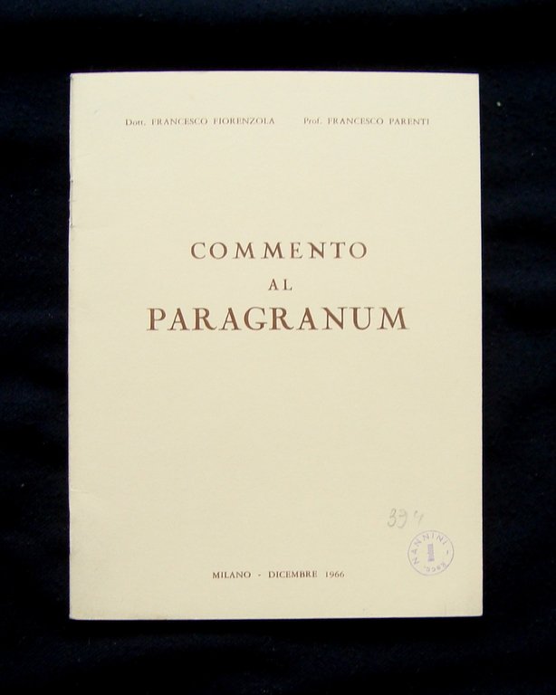 Fiorenzuola F., Parenti F., COMMENTO AL PARAGRANUM Tip. E.Vigano, Milano, 1966; cm. 20,5x15; pp. 29; br. ed. Timbro di proprietà al margine inf. br. ant. Condizioni di conservazione Esemplare in ottimo stato. Compendio critico al volume Paracelso, medico e mago" OPEB.4814 blu "