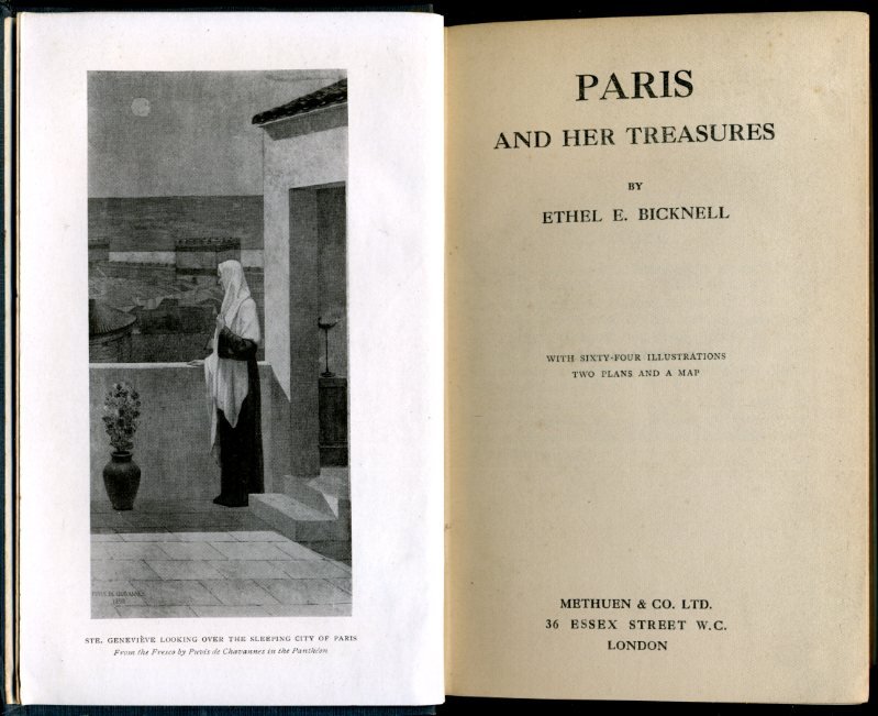 Previous owner's bookplate inside front cover. No other marks or inscriptions. No creasing to covers or to spine. A very clean very tight copy with dull green cloth boards, very minor mark to lower front corner, slightly dusty page edges, trace of rubbing to spine ends and no bumping to corners. Large fold-out map at rear in excellent condition. 363pp. Detailed guide to Paris and her architecture and collections, just before the First World War. With sixty-four illustrations, two plans and map.