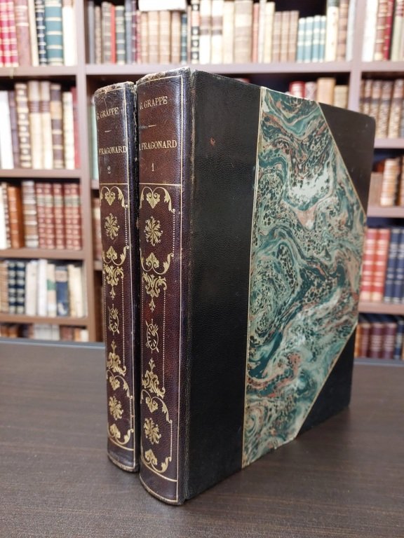 2 volumi in-8° (cm. 24,5), legatura coeva in mezza pelle e angoli con titolo ed eleganti decorazioni in oro ai dorsi, taglio superiore dorato, piatti e risguardi marmorizzati; pp. 134, 77. Conservata la brossura originale a stampa, numerosissime illustrazioni in nero e a colori su tavole f.t. protette da velina. Tiratura limitata di 500 esemplari su carta Giappone. Ottimo esemplare. (NX)