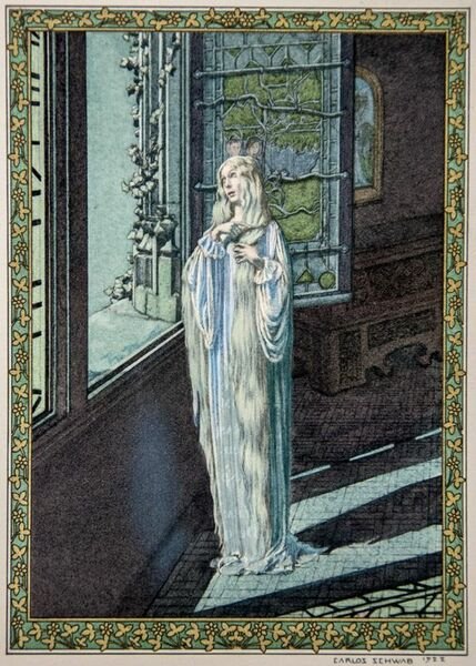 33 compostions en couleurs de Carlos Schwabe, dont 12 à pleine page, et quelques ornementations imprimées en vert. Un des 775 exemplaires numérotés sur vélin pur fil. Bel exemplaire en parfait état.
