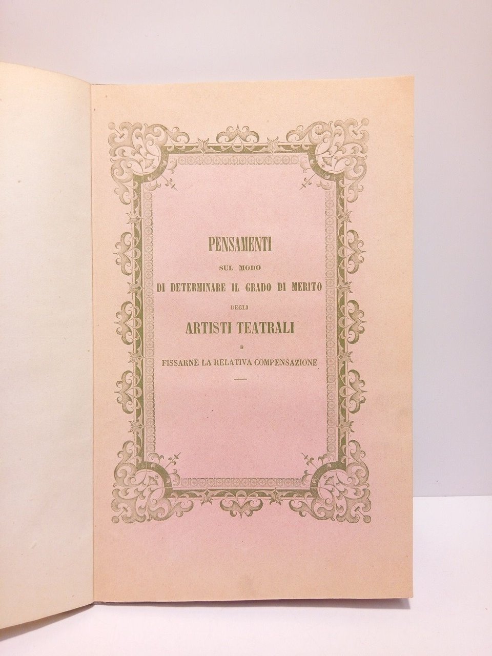 Pensamenti sul modo di determinare in grado di merito degli artisti teatrali e fissarne la relativa compensazione
