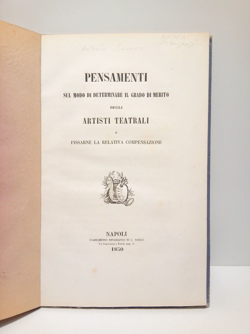 Pensamenti sul modo di determinare in grado di merito degli artisti teatrali e fissarne la relativa compensazione | Libri antichi e moderni | Larussa, Antonio