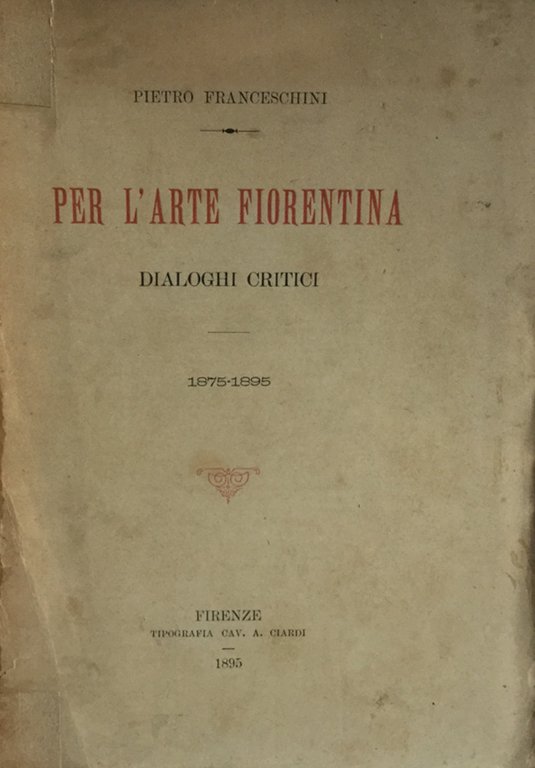 Per l'arte fiorentina. Dialoghi critici. Franceschini Ciardi 1895 | Libri antichi e moderni | Franceschini, Pietro