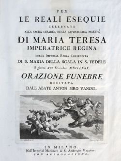 Per le reali esequie celebrate alla Sacra Cesarea Reale Apostolica Maestà di Maria Teresa imperatrice regina nella imperial regia collegiata di S. Maria della Scala in S. Fedele il giorno XVI Dicembre MDCCLXXX.
