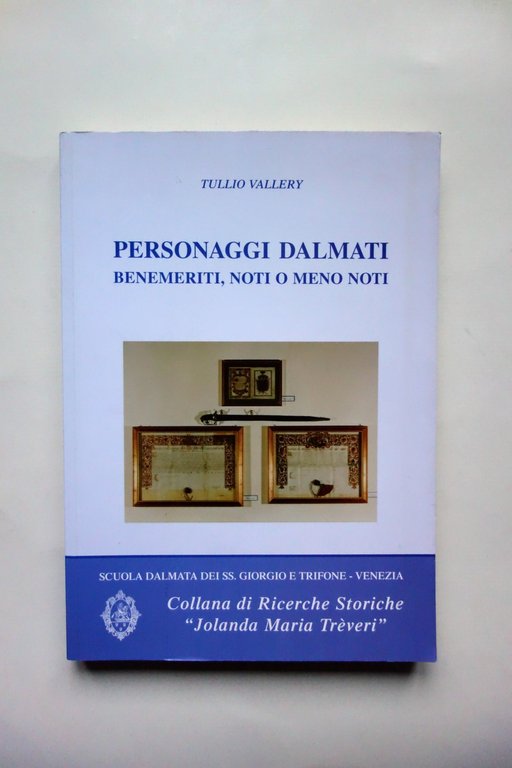 Tullio Vallery, Scuola Dalmata dei SS. Giorgio e Trifone - Venezie - Personaggi dalmati benemeriti, noti o meno noti Collana di Ricerche Storiche Jolanda Maria Treveri, Venezia 2009; cm 24x17; pp. 200 con ill.; brossura ed. Condizioni di conservazione Molto ben conservato con minime tracce di utilizzo; solamente brossura ant. con qualche poco visibile traccia di piega. Interni ottimi. SETT76.L24720 N