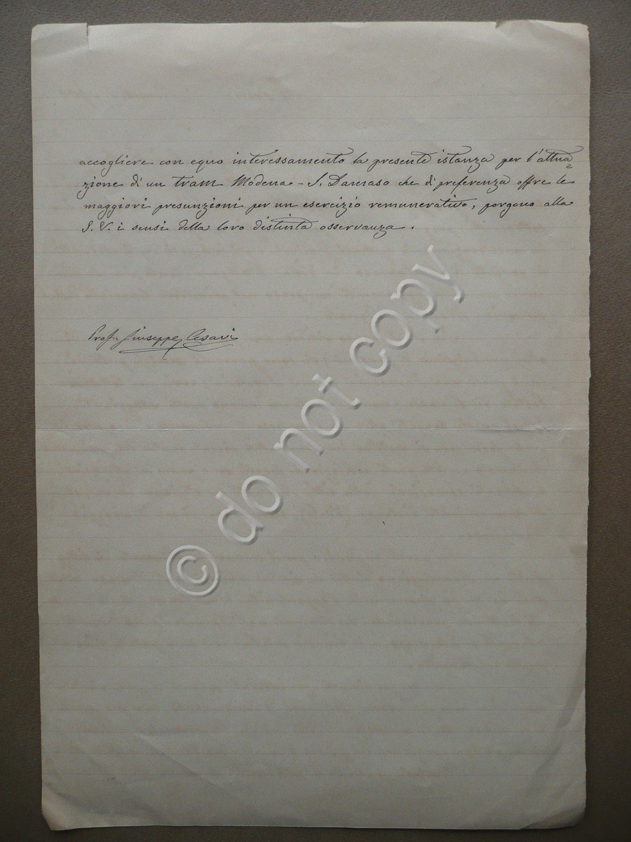 Petizione Manoscritta Dicembre 1902 Linea Tram Modena San Damaso Prof. G. Cesari | Libri antichi e moderni |