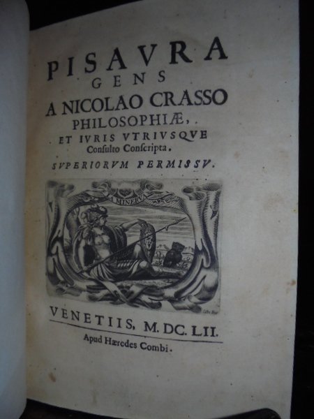 PISAURA GENS A NICOLAO CRASSO PHILOSOPHIAE, ET IURIS UTRIUSQUE CONSULTO CONSCRIPTA. VENETIIS, APUD HAEREDES COMBI. 1652 1652