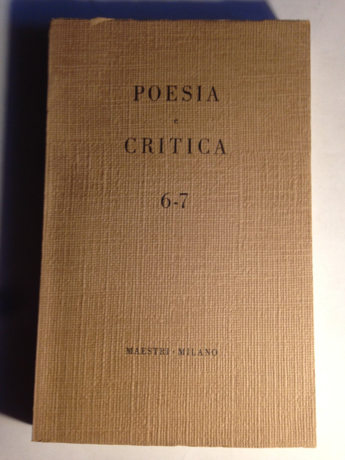I ed. (maggio 1965) della rivista quadrimestrale Anno III - N. 6-7 (Numero doppio). Direzione, redazione, amministrazione Maestri - Via Solferino 21, Milano. VIII/ 192/ brossura in cartoncino goffrato effetto tela écru con titoli in nero. Con illustrazioni in b/n in tavole patinate f.t.. Stato buono (leggera usura della copertina - copertina e pagine brunite).
