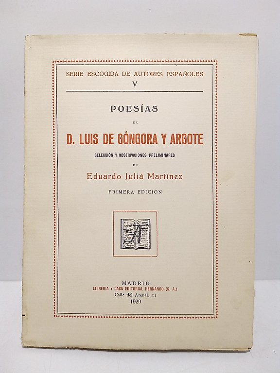 Poesías de D. Luis de Gongora y Argote / Selección y observaciones preliminares de EDUARDO JULIA MARTINEZ | Libri antichi e moderni | Gongora, Luis De