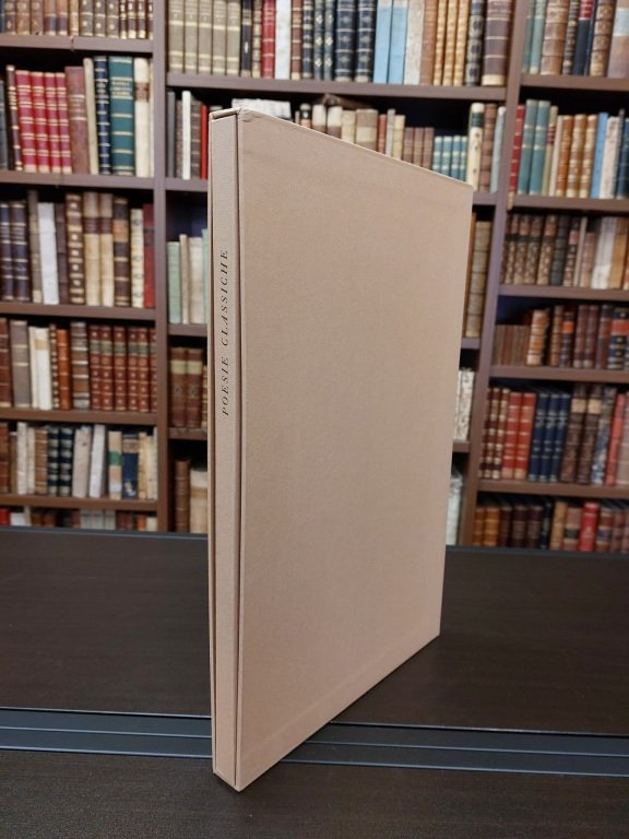 <span style="font-style: normal;">In-4° (cm. 37), 15 fogli sciolti non numerati, stampati al </span><i>recto</i> su carta Fabriano, raccolti in una cartella editoriale in cartoncino con titolo in nero al piatto, camicia e astuccio in cartonato coloniale. Contiene poesie di: Dante Alighieri, Charles Baudelaire, Cecco Angiolieri, Cino Da Pistoia, Joachim Du Bellay, Ugo Foscolo, Giacomo Leopardi, Pablo Neruda, Francesco Petrarca, Christophe Plantin, Alexander Pope, Arthur Rimbaud. Cfr. Mavilla p. 265. Esemplare allo stato di nuovo.