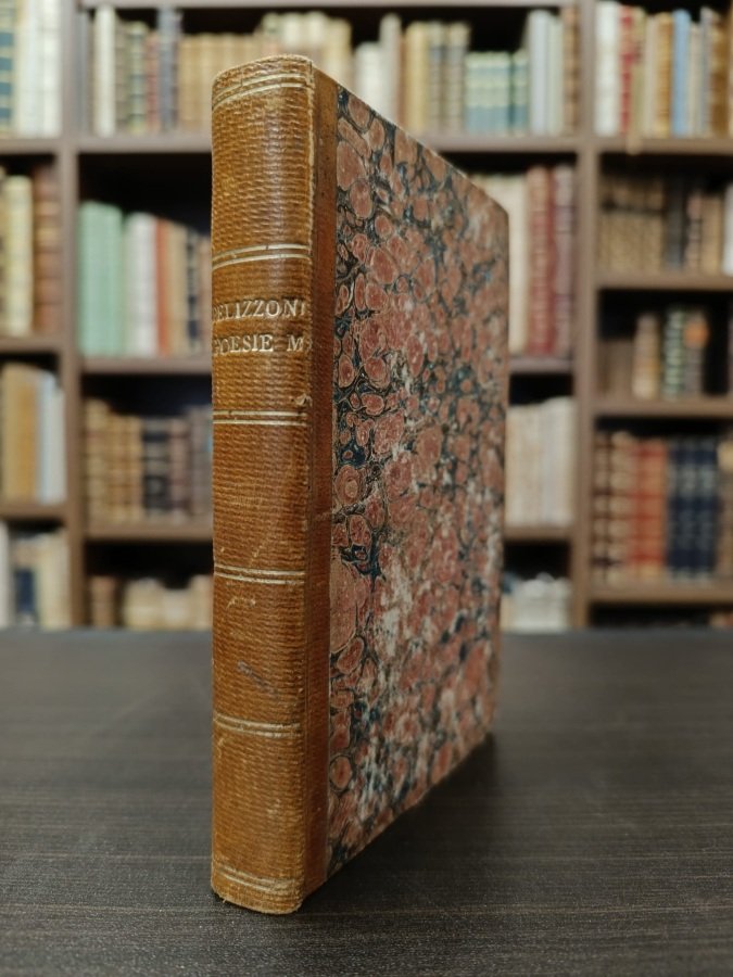 In-16° piccolo (cm. 15,5), legatura coeva in mezza pelle nocciola con titolo e filetti in oro al dorso (lievi tracce d'uso), tali spruzzati blu; pp. VIII 274 [2] in buono stato (alcune fioriture, antiche note manoscritte all'antiporta, al frontespizio e al verso dell'errata); con 1 ritratto dell'autore inciso all'acquatinta da Antonio Lanzani su disegno del celebre Clemenson. Prima edizione di questa raccolta delle poesie dialettali di Carlo Alfonso Pellizzoni, singolare figura di sacerdote che visse quasi tutta la sua vita in campagna, a Solaro, e che nelle sue poesie rappresenta con tono semplice e bonario il mondo popolare e contadino che lo circondava. Cfr. Predari 390. Buon esemplare. (NQ6)