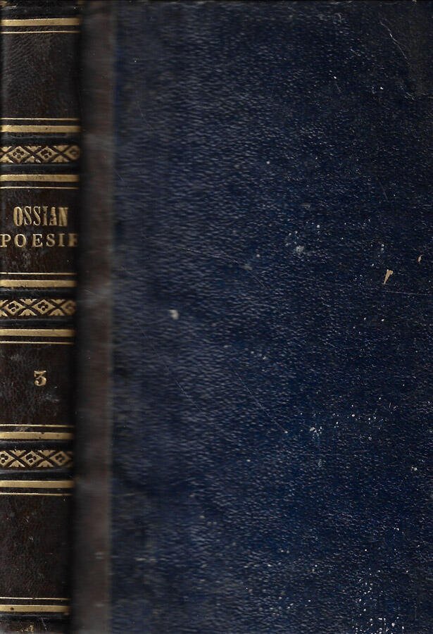 Opera incompleta, vol. III. Traduzione dell'Abate Melchior Cesarotti. Mezza legatura in pelle marrone e piatti cartonati, con titoli e fili in oro solo al dorso, con piccole abrasioni, usura lungo i margini e lieve velatura causa polvere. Pagine appena ingiallite, con cerniera salda e qualche lieve gora, con ampio margine ed alone scuro al margine davanti a partire dal frontespizio fino alla n. 20 circa. Numero pagine 239.