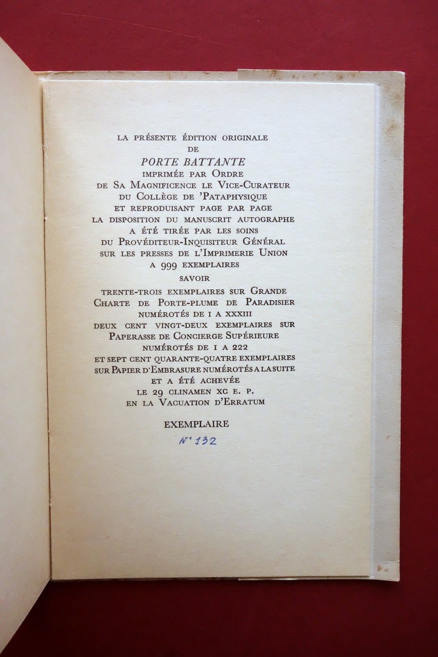 Porte Battante Carnet de Notes de Julien Torma College de Pataphysique 1963