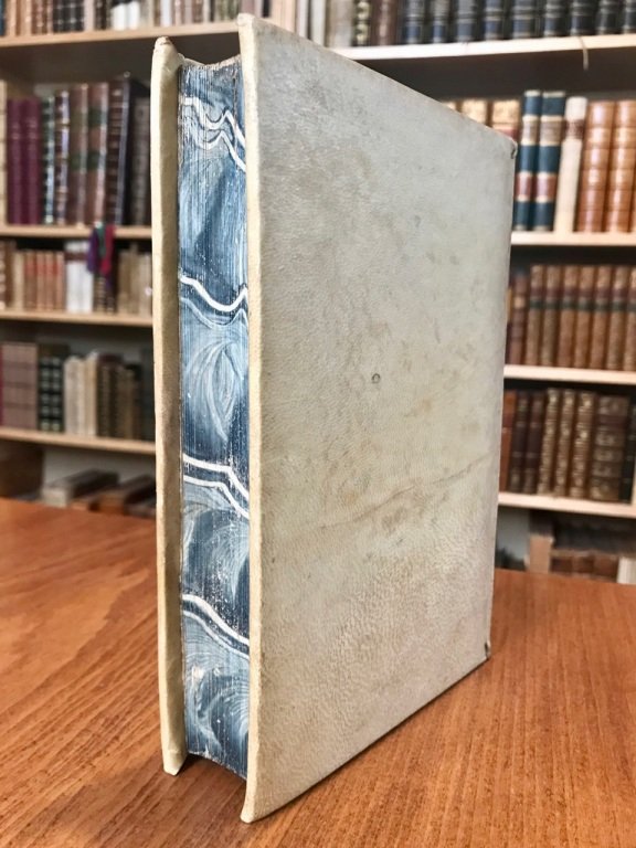 In-8° (cm. 19), legatura coeva in piena pergamena con titolo in oro su tassello al dorso, tagli splendidamente marmorizzati; pp. [4] 574 [2b] in ottimo stato, fresche. L'editore dava alle stampe queste erudite riflessioni per le diverse edizioni dell'opera muratoriana (la prima e la seconda di Milano del Pasquali, l'edizione di Napoli e la ristampa fatta a Roma da gli eredi Barbiellini). Ottimo esemplare. (NK5)