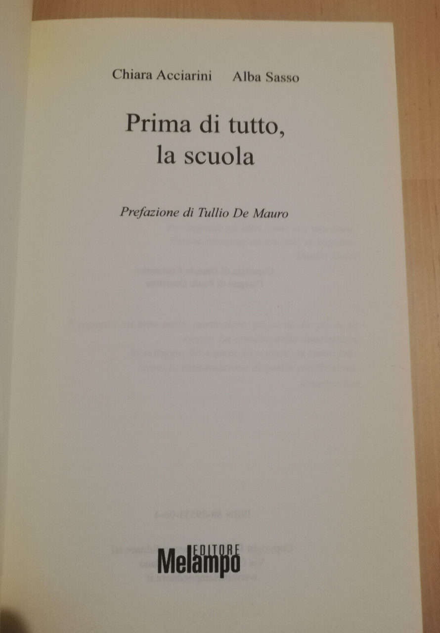 Prima di tutto, la scuola, Chiara Acciarini, Alba Sasso, 2006, Melampo Editore | Libri antichi e moderni |