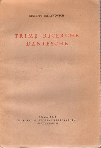 Prime ricerche dantesche | Libri antichi e moderni | Billanovich G
