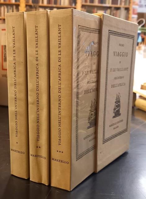 Opera completa in tre volumi. Cm.17,2x10. Pg.296; 300; 292. Illustrazioni a colori fuori testo. Conservati gli acetati originali. Deliziosa ristampa in cofanetto editoriale, in eccellenti condizioni. Memorie di un lungo soggiorno in Sudafrica, per conto della Compagnia Olandese delle Indie orientali, dell'ornitologo e naturalista François Levaillant (Paramaribo, 22 novembre 1753 – Sézanne, 1824). Codice libreria 168939.