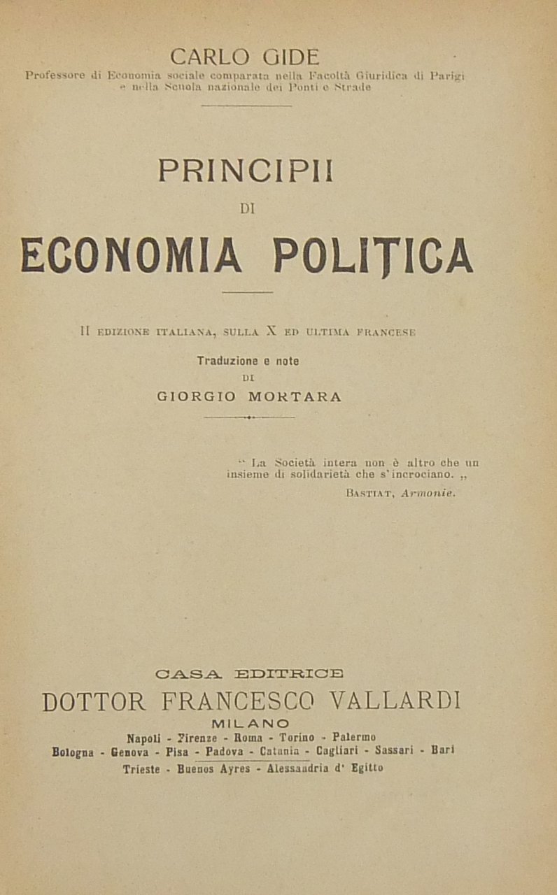 Principii di economia politica. Traduzione sulla nona ed ultima edizione francese di Giorgio Mortara | Libri antichi e moderni | Gide Carlo