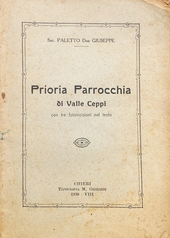 Prioria Parrocchia di Valle Ceppi | Libri antichi e moderni | Paletto, Sac. Don Giuseppe, ,Paletto, Sac. Don Giuseppe