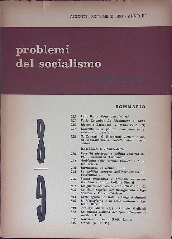 Problemi del Socialismo. Agosto-settembre 1960 anno III n.8-9