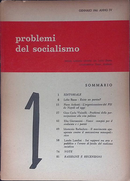 Problemi del Socialismo. Gennaio 1961 anno IV n.1 | Libri antichi e moderni | Basso Lello (Direttore)