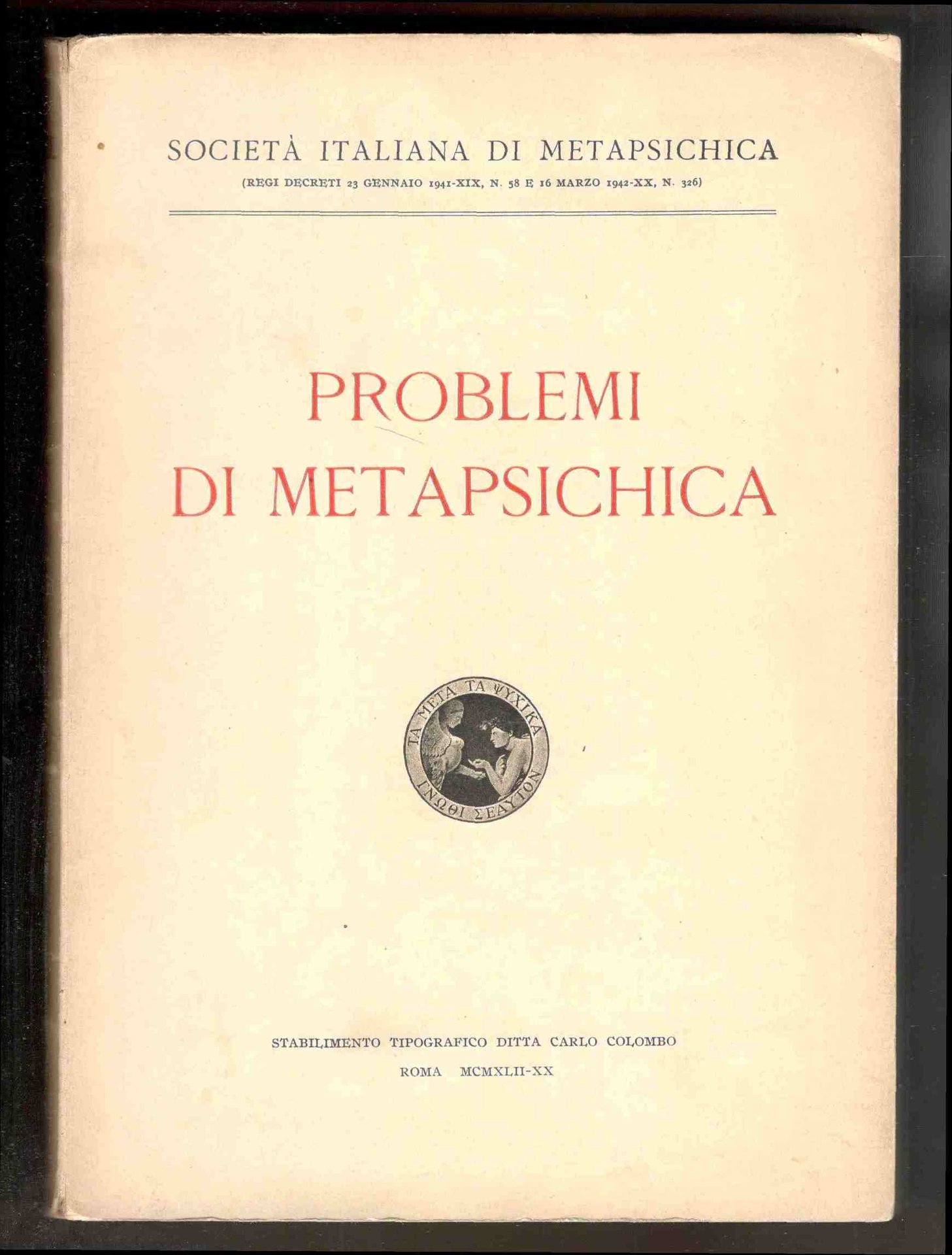 In 8°, pp. 262. Brossura editoriale. Copia in buono stato. Pubblicazione della Società italiana di Metapsichica. Con scritti di Mackenzie, Cazzamalli, Niceforo, De Martino e altri.