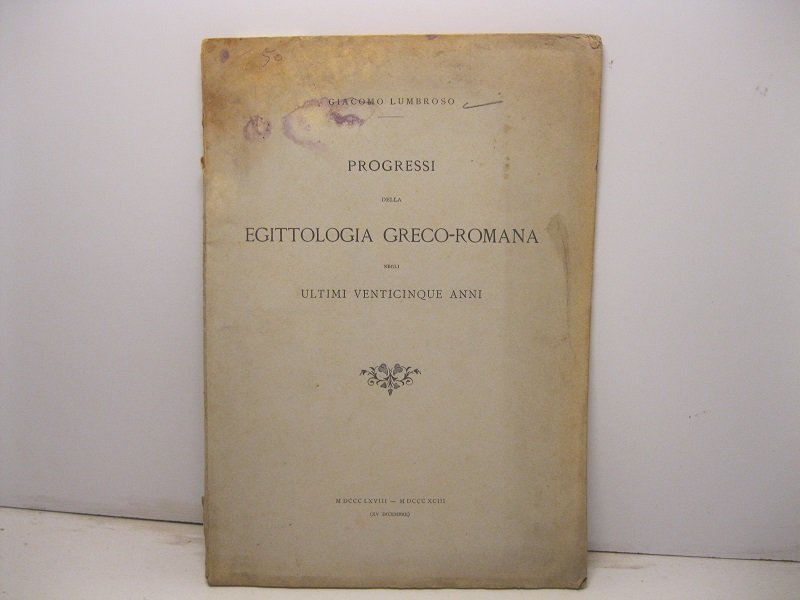 Progressi della Egittologia greco-romana negli ultimi venticinque anni MDCCCLXVIII-MDCCCXCIII | Libri antichi e moderni | Lumbroso Giacomo