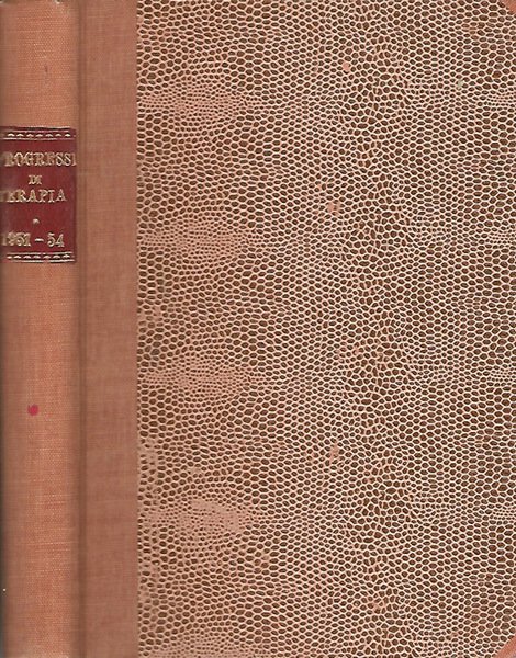 Legatura artigianale in mezza tela che raccoglie in maniera sparsa, riviste mediche mensili degli anni 51-52-54. Copertina interessata da angoli ottusi, lievissime abrasioni, mende alle cuffie, ammaccatura al dorso, tassello leggermente sciupato con caratteri in oro. Buono l'aspettto generale. Tagli bruniti. Fogli leggermente seppiati, talvolta interessati da macchioline di umidità. Illustrazioni in nero e frontespizi dei vari numeri puliti. Illustrazione pubblicitaria colorata a mano, al fasciolo ultimo, numerato 12, mese Dicembre, anno 1954. Numero pagine non rilevabile.