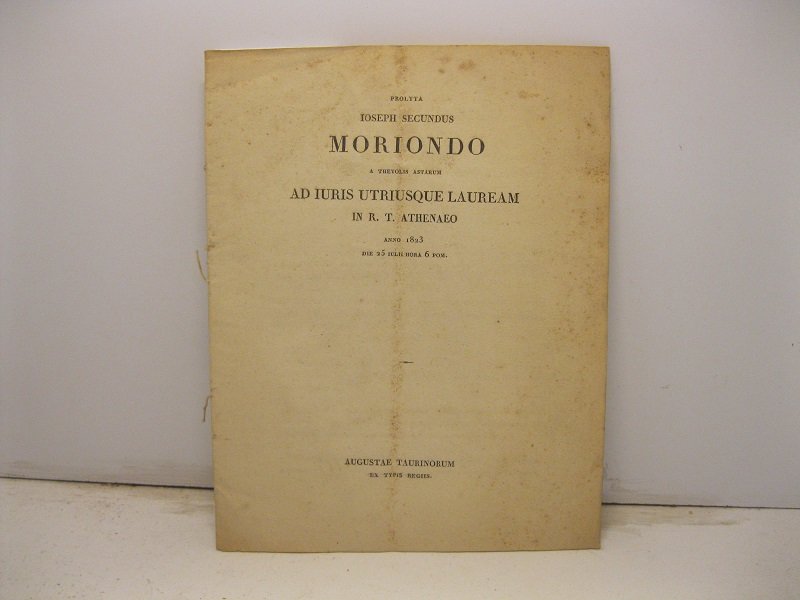 Prolyta Ioseph Secundus Moriondo a Theyolis Astarum ad iuris utriusque lauream in R. T. Athenaeo anno 1823 die 25 Iulii hora 6 pom | Libri antichi e moderni | Moriondo Giuseppe Secondo