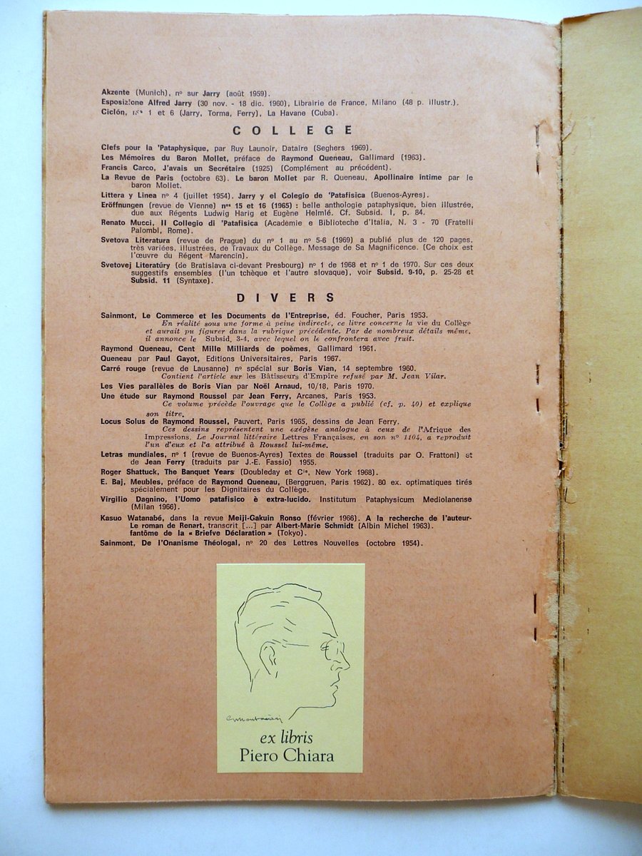 Promptuaire Recapitulatif Cahiers du College de Pataphysique Ex Libris P. Chiara | Libri antichi e moderni |
