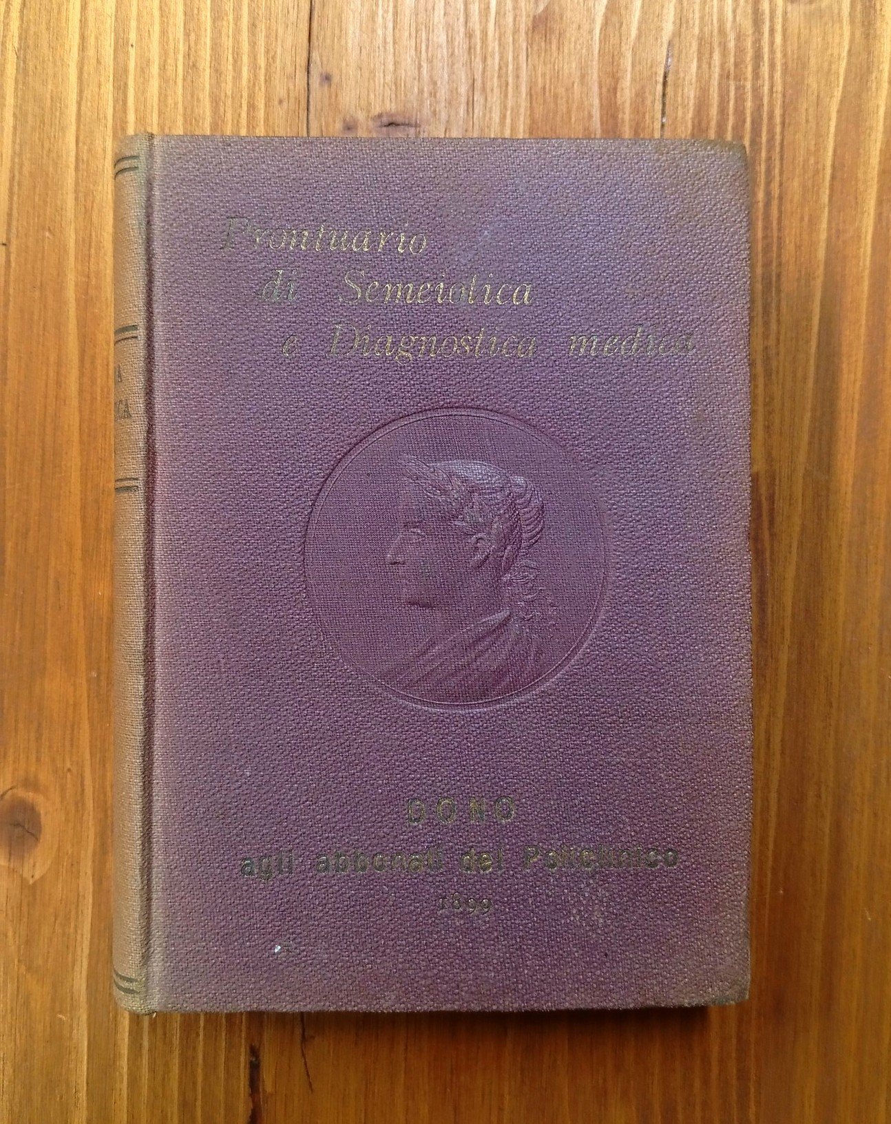 ''Dono agli abbonati del Policlinico, 1899'' - Legatura editoriale in tela bordeaux, medaglione impresso a secco e titoli in oro al piatto anteriore, xi-461 pagine. Dorso scolorito, peraltro ottimo