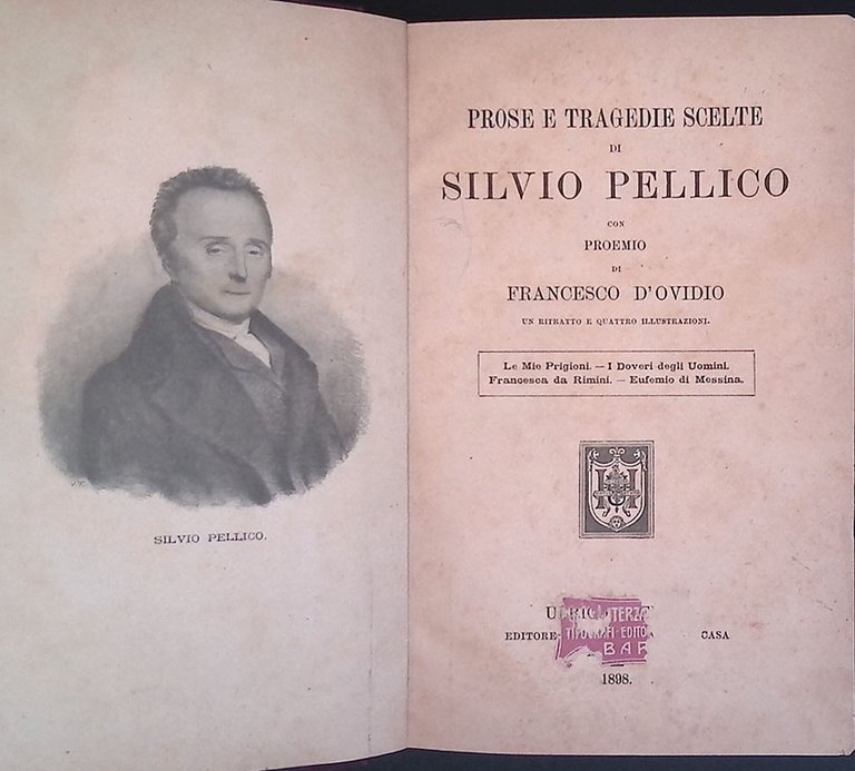 Prose e tragedie scelte di Silvio Pellico | Libri antichi e moderni | Pellico Silvio