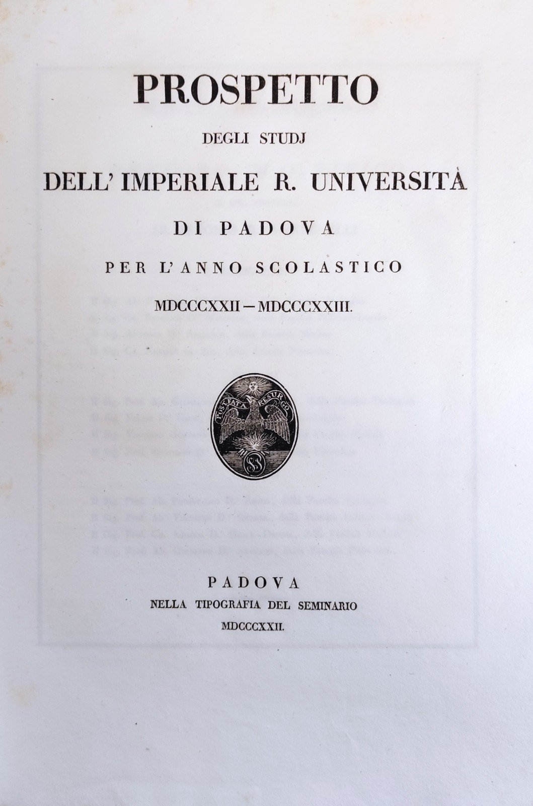 PROSPETTO DEGLI STUDI DELL'IMPERIALE R. UNIVERSITÀ DI PADOVA PER L'ANNO SCOLASTICO MDCCCXXII - MDCCCXXIII