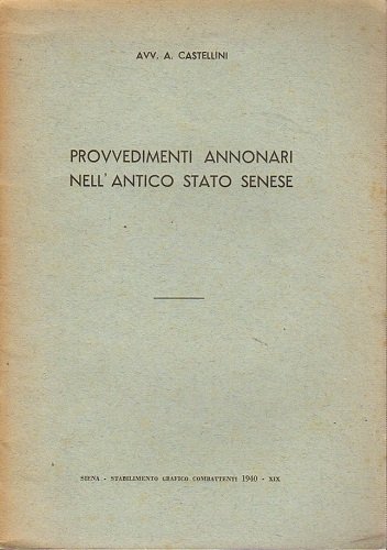 PROVVEDIMENTI ANNONARI NELL'ANTICO STATO SENESE | Libri antichi e moderni | Castellini A