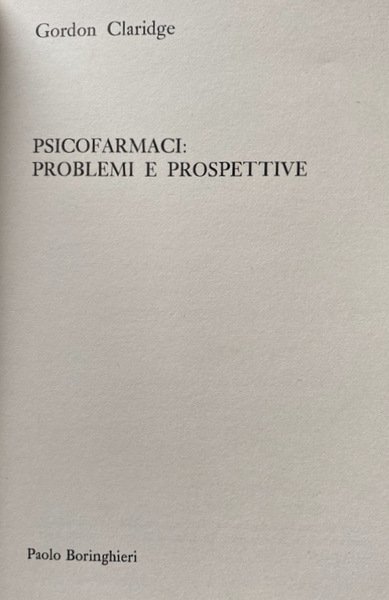PSICOFARMACI: PROBLEMI E PROSPETTIVE | Libri antichi e moderni | Gordon Claridge