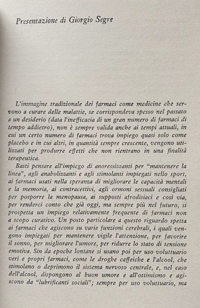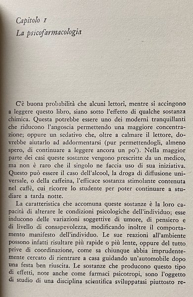 Soggetti: Medicina, Psicofarmacologia, Psicologia, Psichiatria, Psicofarmaci, Farmaci psichiatrici, Cure terapeutiche, Psiche, Cervello, Inconscio, Terapie, Principio attivo, Dinamica, Sistema, Neurologia, Sintomatologia, Effetti collaterali, Droghe psichedeliche, Sostanze stupefacenti, Meccanismo d'azione, Comportamento, Personalità, Vita quotidiana, Sonno, Dormire, Veglia, Malattia mentale, Nevrosi, Disturbi psichici, Ansia, Ossessività, Compulsione, Bibliografia, Letteratura scientifica, Opere citate, Saggistica, Collezionismo, Libri Vintage Fuori catalogo online, Memoria, Funzioni cognitive, Alcool, Caffeina, Vigilanza, Umore, Sistema nervoso centrale, Ottimismo, Menopausa, Sessualità, Libido, Anabolizzanti, Disordini alimentari, Appetito, Inibizione, Euforia, Dimagrire, Dieta, Alimentazione, Depressione, Desiderio, Ipnosi, Epidemiologia, Scienze mediche, Paper, Panel, Studi scientifici, Ormoni, Anatomia, Geriatria, Adolescenza, Adulti, Somministrazione, Posologia, Chimica, Osservazioni, Animali, Ricerca scientifica, Test, Denominazione, Glossario, Terminologia, Farmaci psicotropi, Statistiche, Placebo, Esperimenti, Tolleranza, Stricnina, Stimolanti, Adrenalina, Anfetaminici, Anfetamina, Dolore, Collezionismo, Fisiologia, Gemelli, Psicopatologia, Coscienza, Propriocezione, Isteria, Schizofrenia, Pazienti, Relazione medico-paziente, Alterazioni mentali, Suggestione, Sedazione, Risposta individuale, Guida, Hans Eysenck, Schizotypy, Psychoticism, Genetica, Tranquillanti, Sedativi, Tossicodipendenza, Allucinogeni, Creativity, Stanchezza, Fatica, Barbiturici, Suicidio, Antidepressivi, Vuoto mentale, Rimozione, Diazepam, Marijuana, Hashish, Ippocampo, Gas, Mescalina, Metamfetamina, REM, Sonno, Oppio, Oblio, Noradrenalina, Mescalina, Assuefazione, Atropina, RNA, DNA, Alcolismo, Disintossicazione, Allucinazioni, Amnesia, Breathalyzer, Anestesia, Angoscia, Cocaina, Analgesia, Narcosi, Medicine, Psychopharmacology, Psychology, Psychiatry, Psychopharmaceuticals, Psychiatric drugs, Therapeutic treatments, Psyche, Brain, Unconscious, Therapies, Active principle, Dynamics, System, Neurology, Symptomatology, Side effects, Psychedelic drugs, Narcotic substances, Mechanism of action, Behavior, Personality, Daily life, Sleep, Sleeping, Waking, Mental illness, Neurosis, Psychic disorders, Anxiety, Obsessivity, Compulsion, Bibliography, Scientific literature, Works cited, Non-fiction, Collecting, Out of print books, Memory, Cognitive functions, Alcohol, Caffeine, Vigilance, Mood, Central nervous system, Optimism, Menopause, Sexuality, Anabolic, Eating disorders, Appetite, Inhibition, Euphoria, Lose weight, Diet, Nutrition, Depression, Desire, Hypnosis, Epidemiology, Medical sciences, Scientific studies, Hormones, Anatomy, Geriatrics, Adolescence, Administration, Posology, Chemistry, Observations, Animals, Scientific research, Names one, Glossary, Terminology, Psychotropic drugs, Statistics, Experiments, Tolerance, Strychnina, Stimulants, Adrenaline, Amphetamines, Amphetamine, Pain, Collecting, Physiology, Twins, Psychopathology, Consciousness, Proprioception, Hysteria, Schizophrenia, Patients, Doctor-patient relationship, Alterations, Suggestion, Sedation, Individual response, Help, Genetics, Tranquilizers, Sedatives, Drug addiction, Hallucinogens, Tiredness, Fatigue, Barbiturates, Suicide, Antidepressants, Mental blank, Removal, Diazepam, Hippocampus, Mescaline, Methamphetamine, Sleep, Opium, Oblivion, Noradrenaline, Mescaline, Addiction, Atropine, Alcoholism, Detoxification, Hallucinations, Anesthesia, Anguish, Cocaine