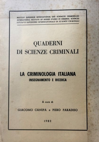 Atti del Seminario di studi intitolato “Insegnamento e ricerca nella criminologia italiana”, tenutosi a Siracusa dal 16 al 19 febbraio 1981 ed organizzato e promosso dall'Istituto Superiore Internazionale di Scienze Criminali (ISISC).