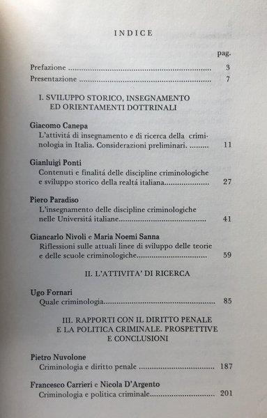 Titolo: La Criminologia italiana. Insegnamento e ricerca