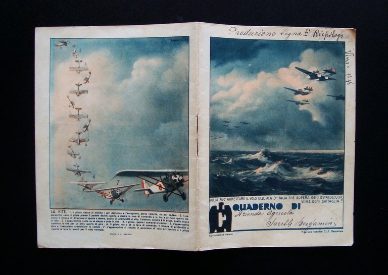 Quaderno scolastico anni 30 Aviazione Aeroplani Rigorini