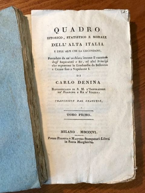 Quadro istorico, statistico e morale dell'Alta Italia e dell'Alpi che la circondano, preceduto da un'occhiata intorno il carattere degl'Imperatori e Re, ed altri Principi che regnarono in Lombardia da Belloveso e Cesare fino a Napoleone I. | Libri antichi e moderni | Denina Carlo.
