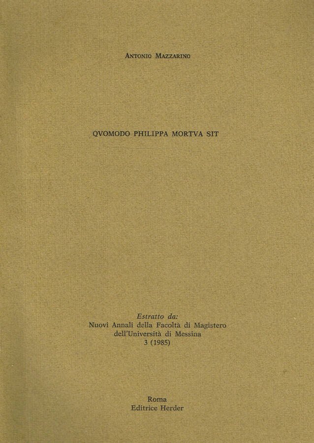 QUOMODO PHILIPPA MORTUA SIT | Libri antichi e moderni | Antonio Mazzarino
