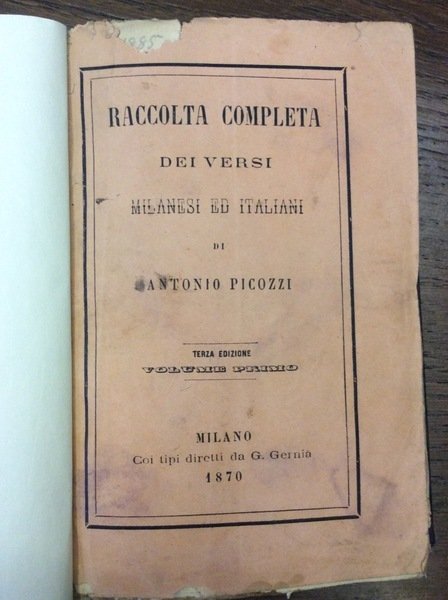 RACCOLTA COMPLETA DEI VERSI MILANESI ED ITALIANI. - Quarta edizione. | Libri antichi e moderni | PICOZZI Antonio
