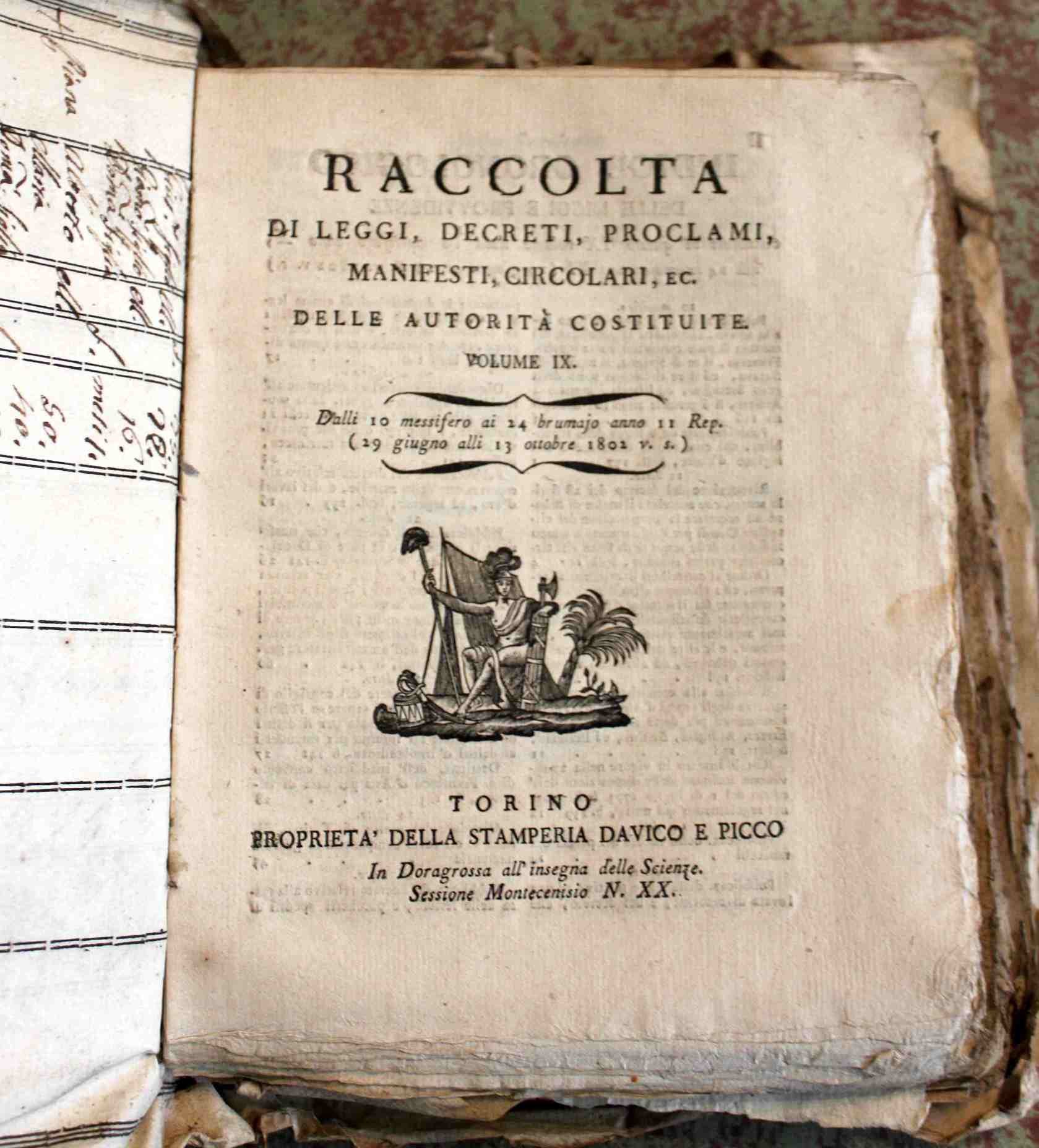Raccolta di leggi, decreti, proclami, manifesti ec. Pubblicati dalle autorità costituite. Volume IX. Dalli 10 messifero ai 24 brumaio anno 11 Rep. (29 giugno alli 13 ottobre 1802 v. s.) | Libri antichi e moderni |